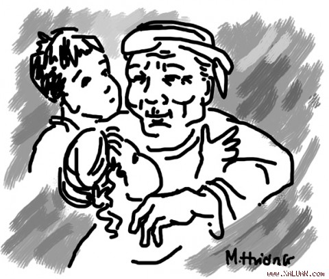 - Thưa bà! Thằng cháu Tân con nhà chú Tớm nhà tôi đấy!