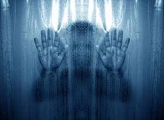 Trên lầu, ông chồng đang quỳ xuống sàn mò kiếm cái bàn tay khị Ông cố kiếm được nó trước khi kẻ gây ra tiếng gõ cửa bước vào nhà.
